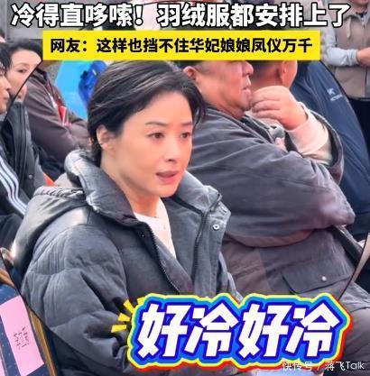 后面拍完她又赶紧把外套穿上,这个过程中还被问采访了,估计是问她什么时候来的, 她表示刚来,一直在剧组试妆没出门,正好镜头能近了一点,咱也看看她如今的状态。