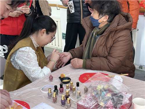 活动现场氛围温馨热烈,设有三大体验专区。在“指上添花”美甲区,大家精心点缀指尖,焕发神采;“茗香雅居”花茶DIY区,大家巧手搭配花草,调制专属养生茶饮;非遗拓印扇子DIY则让参与者沉浸于传统技艺的魅力,一幅幅图案跃然扇上,古韵新生。大家相互交流创作心得,笑声不断,在忙碌的工作之余享受了一段轻松愉悦的时光。