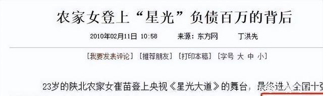 《陕北农家女负债40万上星光大道,自称很委屈》华商报 《星光大道:陕北农家女的荣耀与尴尬》人民文摘