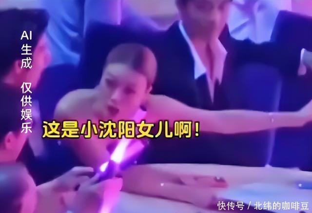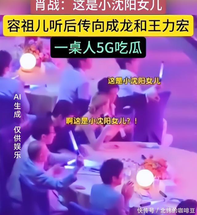 而此时肖站指着台上的沈佳润对容祖儿说了些什么,网友猜测是告诉容祖儿台上演出的是小沈阳的女儿。随后容祖儿一脸惊诧的“吃瓜”表情,然后转过头指着台上好像是告诉王力宏,快看,台上的那个女孩是小沈阳的女儿。随后,成龙王力宏几人的荧光棒挥舞的就更卖力了。
