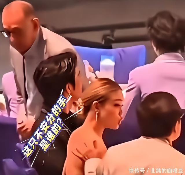 这一换位就把容祖儿换到了成龙的座位旁边了,这下可把成龙开心坏了,不停和容祖儿聊天,并一时忘形把手放在了容祖儿的肩膀上,然后在容祖儿的肩膀上和背部游走。容祖儿碍于大哥的地位也只能尴尬微笑。